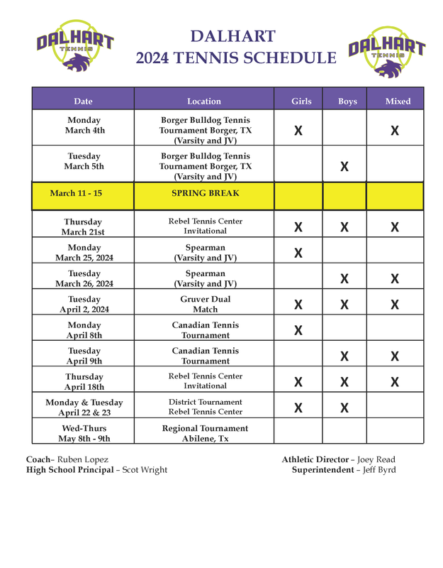 Tennis Schedule 2024